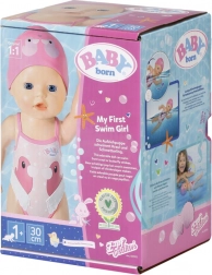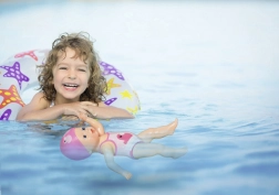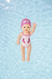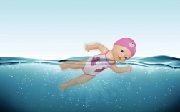 Păpușa BABY born My First înotător este partenerul ideal pentru distracție în apă, în cadă sau în piscină. Doar întinzi brațele înapoi și, după eliberare, păpușa înoată singură – fără baterii, fără griji, doar mișcare și distracție pură.