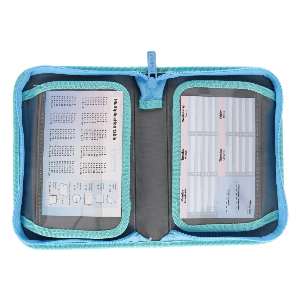 Interiorul cu benzi elastice și compartimente permite depozitarea sistematică a instrumentelor de scris și a accesoriilor, astfel încât totul să fie imediat la îndemână.