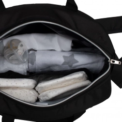 Compartimentarea gândită inteligent oferă acces rapid la cele mai importante lucruri și purtare confortabilă în mai multe moduri. Datorită curelei lungi, reglabile și mânerelor scurte, puteți purta geanta în mână, pe umăr sau o puteți prinde de cărucior cu ajutorul clipurilor.