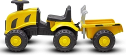 Tractorul fără pedale BABY MIX BENNY, galben, cu remorcă detașabilă și unelte, îi va încânta pe micii fermieri. Oferă o construcție stabilă, roți antiderapante, șezut confortabil și claxon. Datorită greutății reduse se manevrează ușor, iar remorca poate transporta jucării, nisip și mici comori.