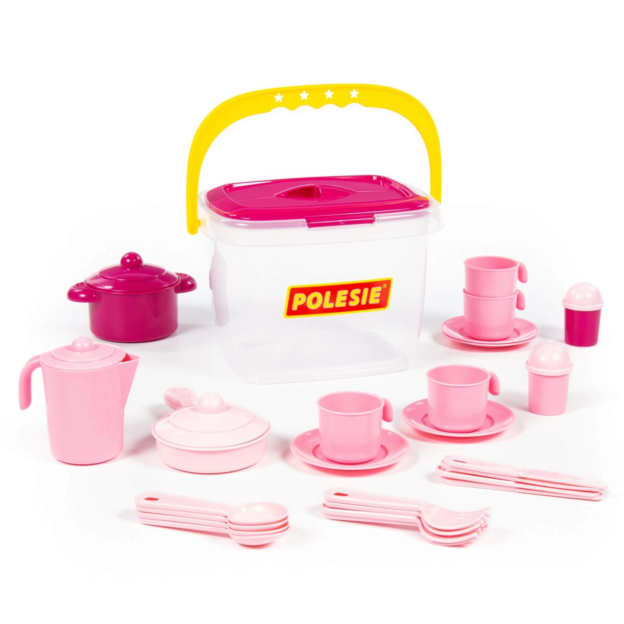 Dezvoltați imaginația și abilitățile sociale ale copiilor cu un fermecător set de ceai pentru patru. Acest set oferă un echipament complet pentru mici ceaiuri jucăușe – copiii pot juca rolul de gazdă, pot învăța să împartă și bazele etichetei la masă, bucurându-se în același timp de multă distracție.