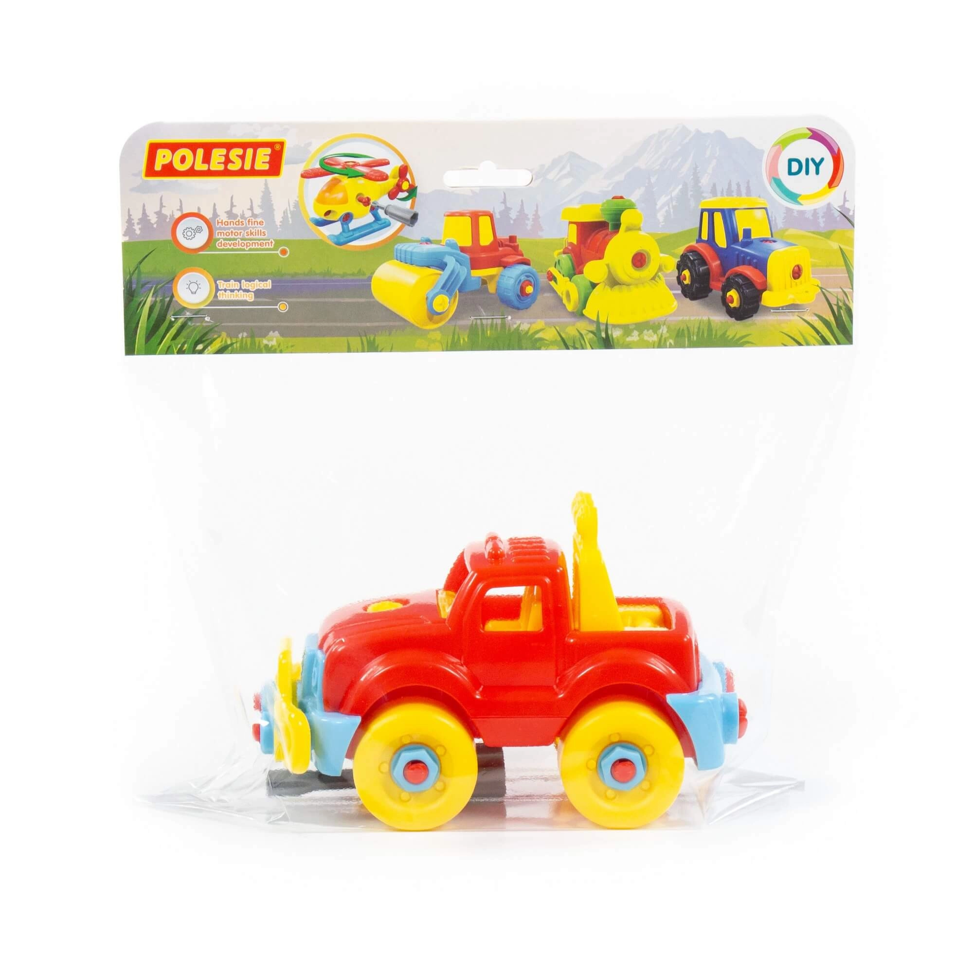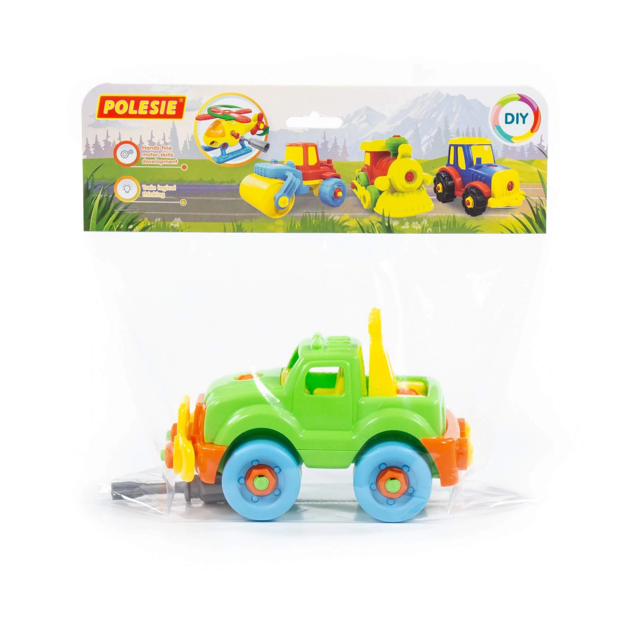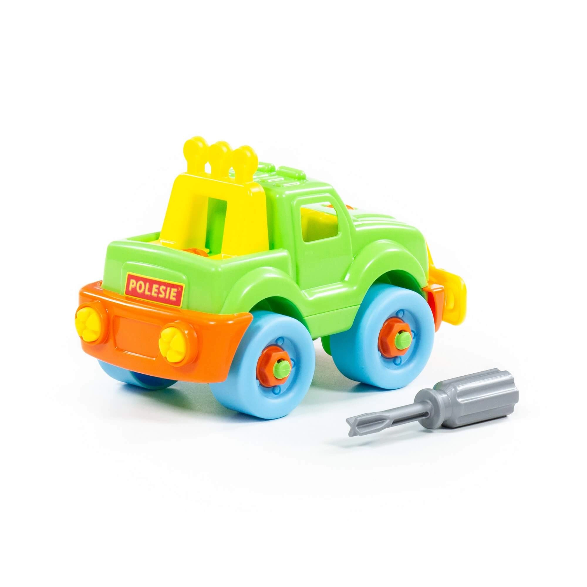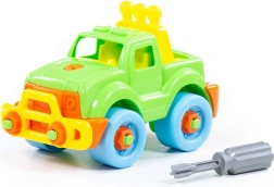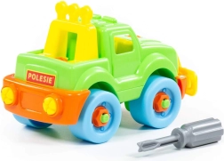 Descoperă învățarea prin joacă cu jeepul cu șuruburi POLESIE, care îi motivează pe copii să exploreze și să construiască. Datorită pieselor mari și sigure și șurubelniței din plastic, micii tehnicieni pot exersa montajul și demontajul, întărindu-și coordonarea mână–ochi.