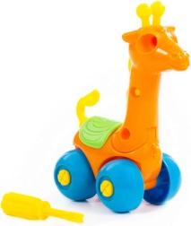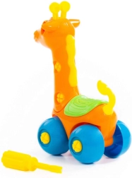 Pachetul include o șurubelniță pentru copii – girafa poate fi ușor demontată și reasamblată, apoi poate merge datorită roților.
