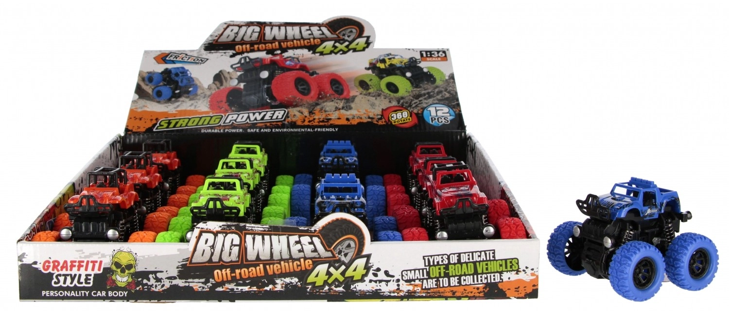 Jucăria este disponibilă în patru variante de culoare și, datorită execuției robuste, face față mersului pe covor, gresie și pe terenul de joacă. Cadoul ideal pentru micii pasionați de mașini și off-road, care le dezvoltă imaginația și creativitatea.