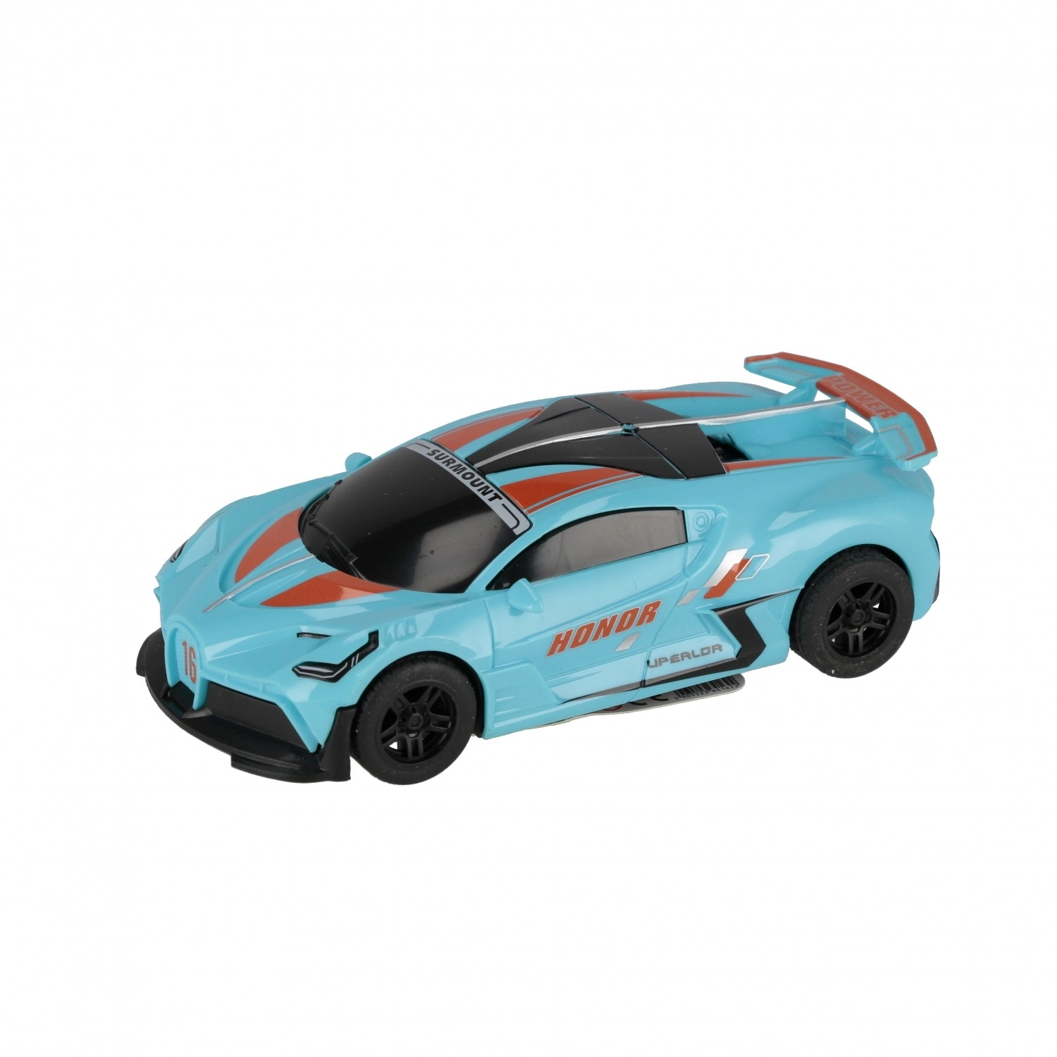 Mașină de curse rapidă și distractivă cu funcție pull-back pentru o deplasare dinamică fără baterii. Datorită roții suplimentare pentru drift realizează derapaje spectaculoase, amplificând experiența de joc plină de acțiune. Ideală pentru copii de la 3 ani, disponibilă în trei culori (negru, albastru, galben).