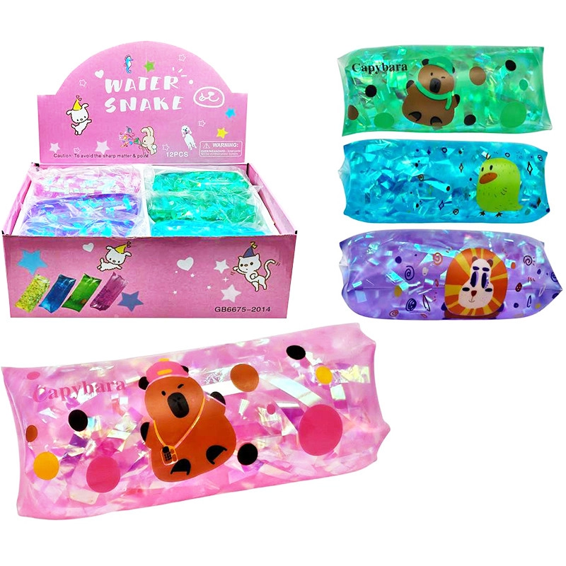 Șarpele cu apă distractiv în formă de animăluț oferă ore întregi de joacă și relaxare pentru copiii de la 3 ani. Datorită efectului plăcut „alunecos” de gel, se ține excelent în mână și susține motricitatea fină. Disponibil în mai multe variante de culori, ambalat câte 12 bucăți în cutie, prețul este pentru 1 bucată.