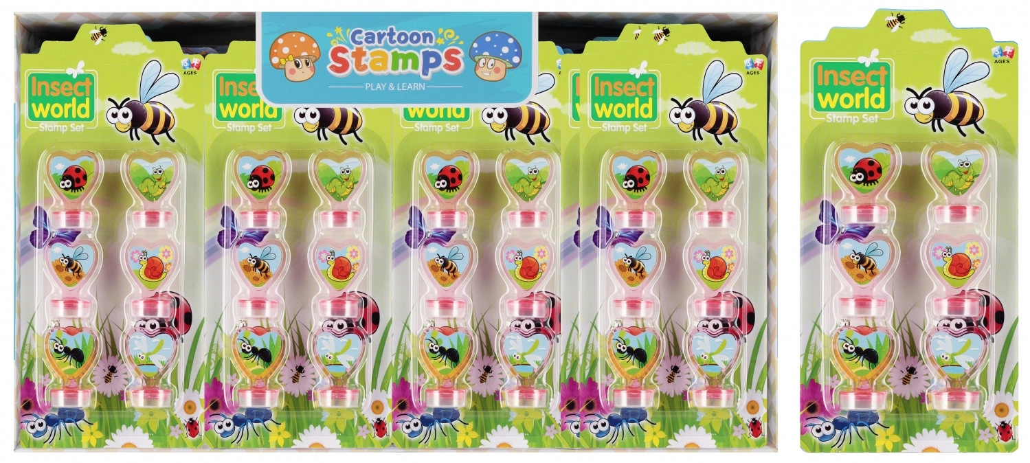 Ștampile vesele cu motive de insecte pentru creații și decorare. Setul conține 6 ștampile în variante diferite, ideale pentru decorarea caietelor, cutiuțelor, casetelor de bijuterii și pentru realizarea de felicitări originale. Ambalaj compact 10 × 20 × 3 cm. Potrivite pentru copii de la 3 ani.