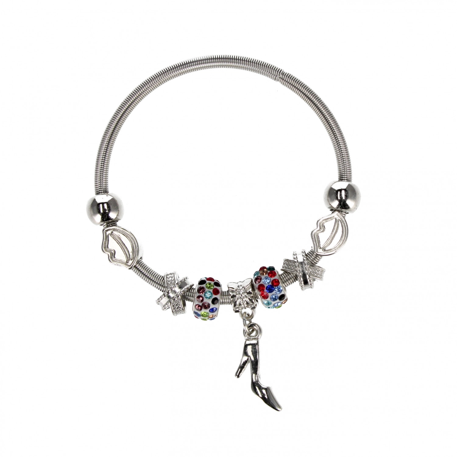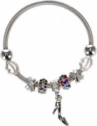 Descoperă brățara metalică cu pandantiv universală, pe care o vei îndrăgi pentru posibilitatea de a schimba rapid stilul. Brățara cu lanț tip șarpe și mărgele decorative, inele distanțiere și pandantive atârnate îți permite să creezi un look unic pentru fiecare zi.