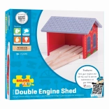 Extindeți-vă traseul feroviar cu un depozit stilat din cărămidă, în care puteți parca confortabil până la două trenulețe. Datorită șinei de intrare incluse, conectați ușor depozitul la linia existentă și creați o bază realistă pentru odihnă, întreținere sau alimentarea garniturilor. Construcția robustă din lemn și designul atemporal asigură durabilitate îndelungată și joc sigur.