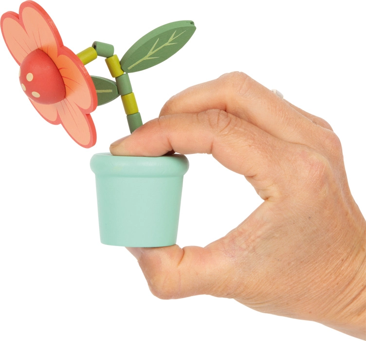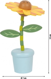O floare dansatoare drăguță din lemn, într-un ghiveci, care îi încântă pe copii și adulți deopotrivă. La apăsarea părții inferioare, floarea începe să se miște delicat – tulpinile se unduiesc, iar floarea se leagănă. Această jucărie simplă, dar captivantă, dezvoltă motricitatea fină, coordonarea și percepția mișcării. Datorită lemnului robust, suprafeței netede și dimensiunii compacte, se ține perfect în mâinile mici. Prețul este pentru 1 bucată, sunt disponibile 5 variante de culori, trimitem aleatoriu.