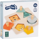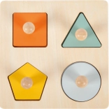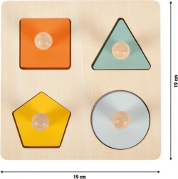 Fiecare piesă are un buton robust pentru o prindere sigură și introducere comodă – ideal pentru antrenarea motricității fine și a coordonării mână–ochi.