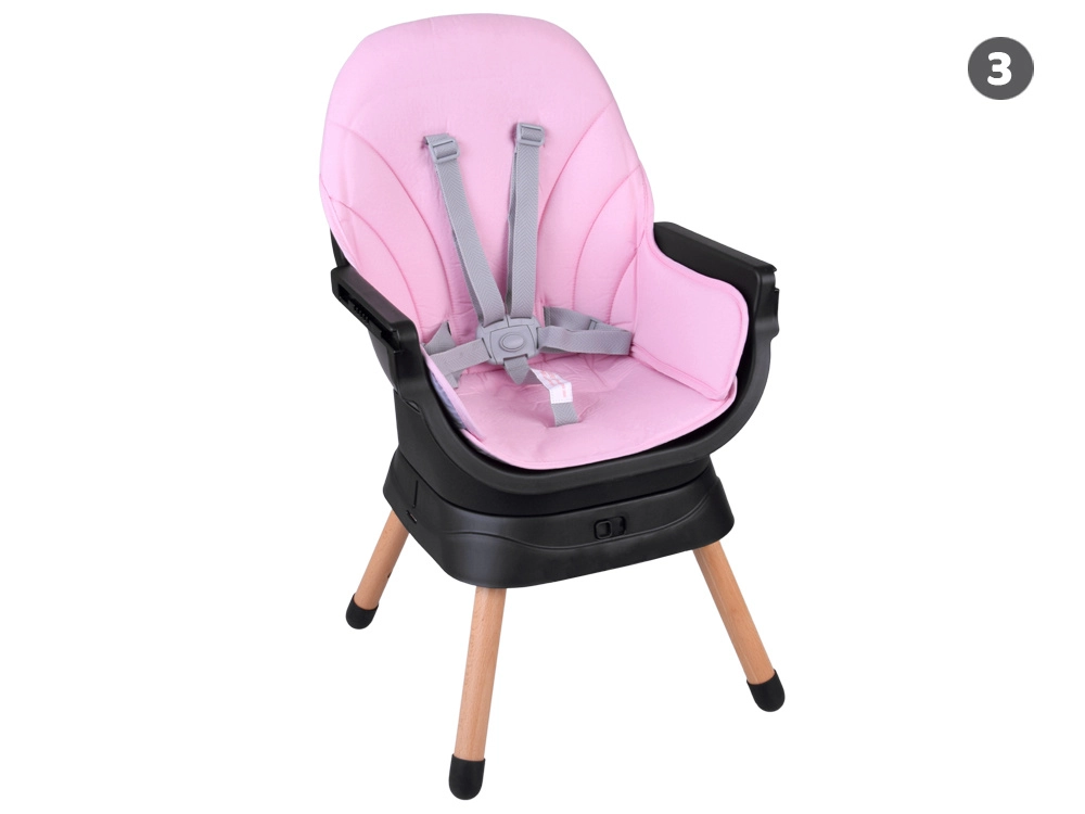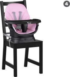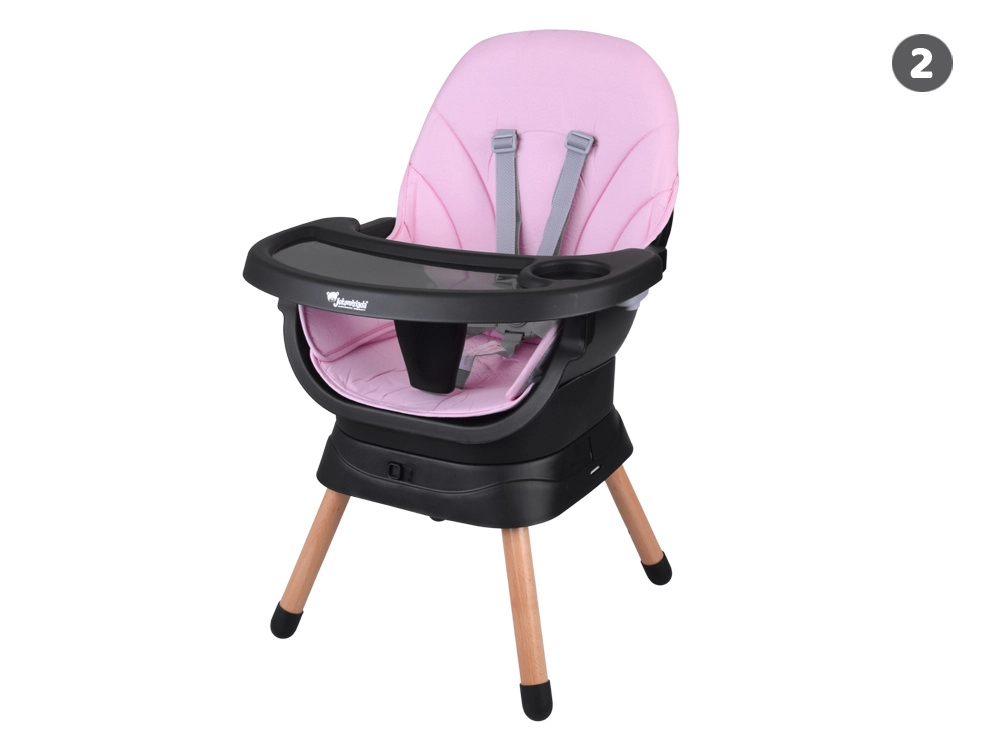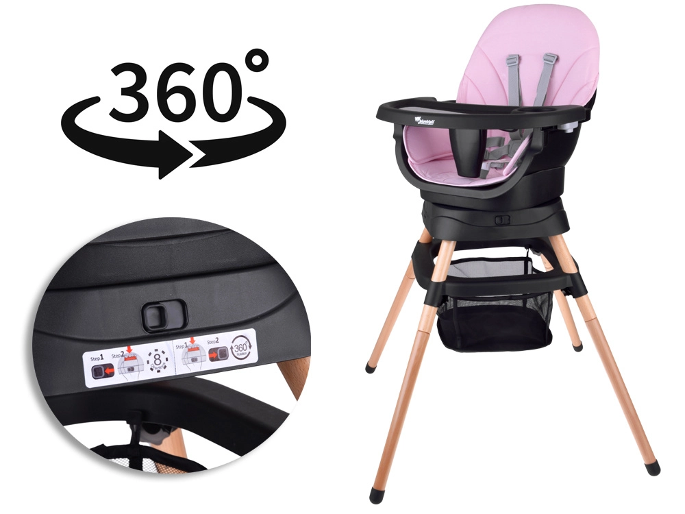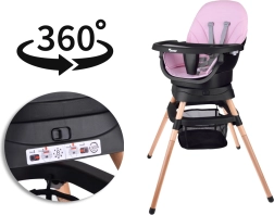 Acest scaun multifuncțional 6‑în‑1 se adaptează ușor fiecărei etape de dezvoltare a copilului – de la primele diversificări până la șederea și joaca independentă. Datorită scaunului pivotant 360° cu 8 poziții de blocare și centurilor de siguranță în 5 puncte, oferă confort și siguranță maxime. Tăvița profilată detașabilă se curăță rapid sub jet de apă sau în mașina de spălat vase.