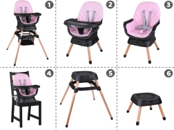 Scaun de masă pentru copii 6‑în‑1, practic, care crește odată cu copilul tău. Oferă un scaun pivotant la 360°, construcție modulară, centuri în 5 puncte, tăviță reglabilă și detașabilă și huse ușor de curățat. Construcție stabilă și design modern potrivit pentru orice locuință.