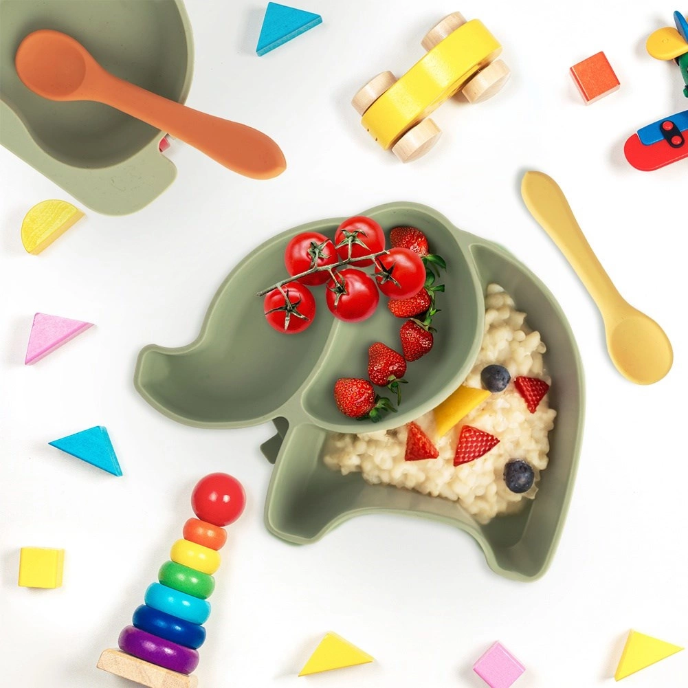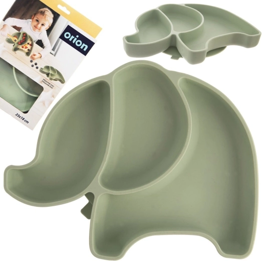 Farfuria compartimentată din silicon, în forma unui elefănțel simpatic, ajută la servirea meselor variate astfel încât să rămână separate. Datorită ventuzei mari și puternice, stă ferm pe masă și reduce riscul de răsturnare. Este ușoară, rezistentă și ideală pentru utilizare zilnică acasă sau în călătorii.