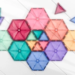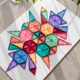 Setul geometric pastel CONNETIX oferă piese magnetice transparente care, datorită magneților integrați puternici, se conectează ușor și solid pe toate laturile. Copiii pot crea modele 2D și construcții 3D – de la rozete și mozaicuri până la poduri, turnuri și rachete – dezvoltând natural gândirea logică, creativitatea și motricitatea.