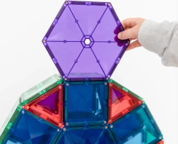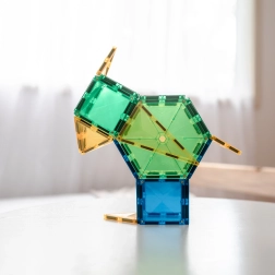 CONNETIX este un brand australian îndrăgit, care inspiră copiii și adulții să exploreze fizica, geometria și designul prin construcție ludică. Plăcuțele transparente, intens colorate, se conectează pe fiecare latură și printr-un „click” formează structuri stabile. Setul este ideal pentru joacă liberă, experimente acasă și activități de tip Montessori și terapie senzorială.
