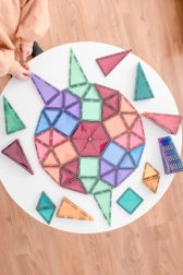 Mega setul pastel CONNETIX oferă o varietate bogată de forme pentru construcții creative – de la castele și poduri la vehicule și mandale geometrice. Piesele din ABS de calitate sunt translucide, cu culori stabile și, datorită magneților neodim puternici, creează structuri stabile. Joaca susține într-un mod distractiv geometria, fizica, gândirea logică și cooperarea.
