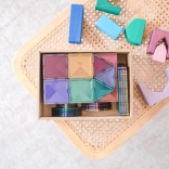 Piesele translucide în nuanțe pastel delicate stimulează imaginația, susțin percepția senzorială și permit efecte luminoase uimitoare când te joci la fereastră sau cu iluminare de fundal.