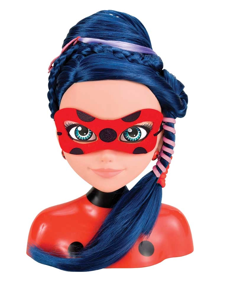 Descoperă distracția creativă cu capul de coafat MIRACULOUS LADYBUG Marinette Deluxe cu înălțimea de 20 cm. Părul lung albastru este ideal pentru pieptănat, împletit și realizarea cozițelor. În pachet găsești un set bogat de 30 de accesorii, inclusiv șuvițe clip-in, mărgele cu aplicator, panglici, elastice, clame, masca Ladybug și autocolante sclipitoare. Perfect pentru dezvoltarea creativității și a motricității fine la copiii de la 4 ani.