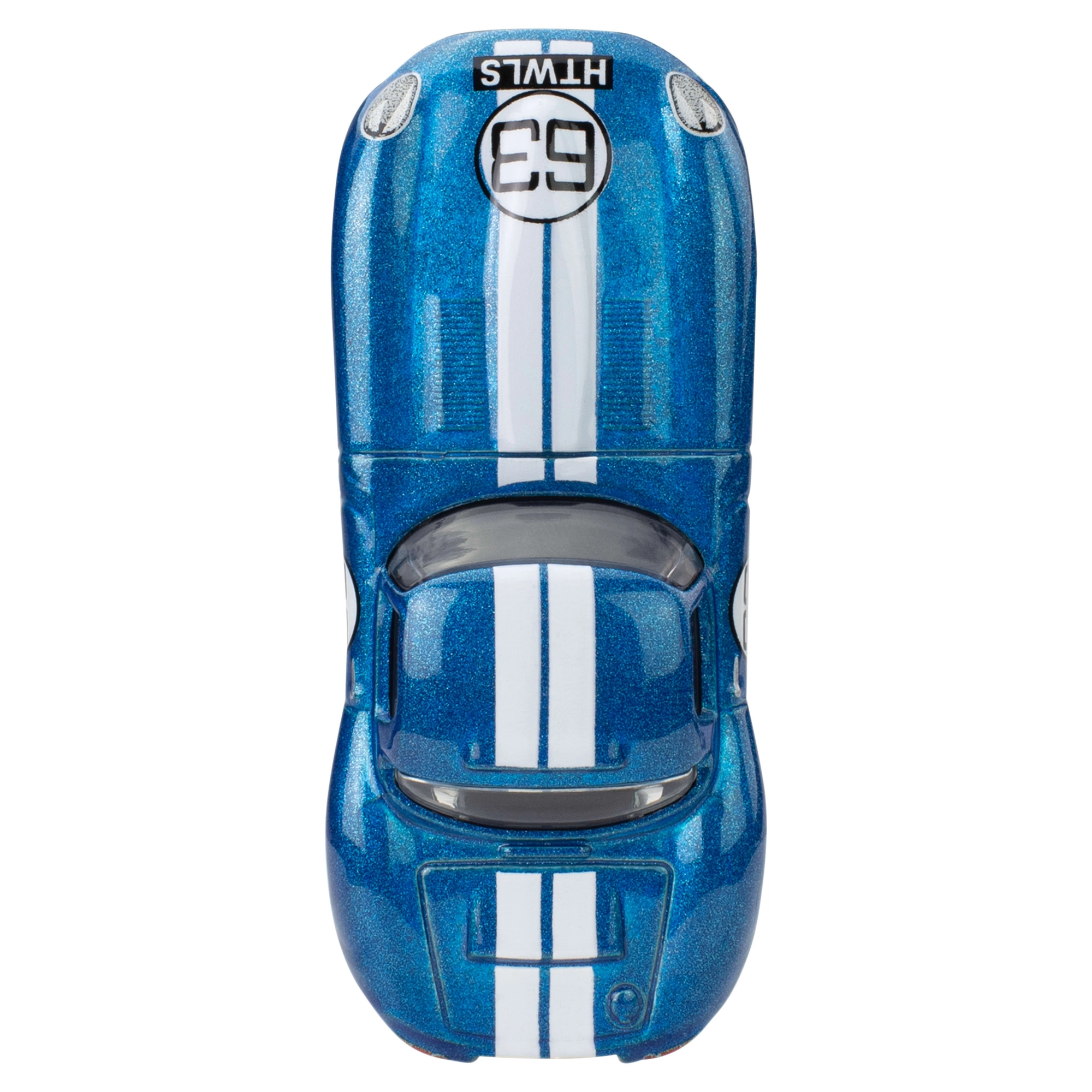 - Design autentic: detalii fidele ale caroseriei, grafică de curse și vopsea albastră cu dungi.