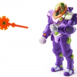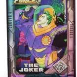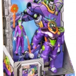 Armura mare violet, cu vizor transparent, găzduiește figurina THE JOKER de 10 cm. Partea superioară rabatabilă permite așezarea rapidă a figurinei și pregătirea pentru acțiune.