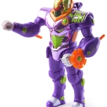 - Pachet complet – figurină, mech, proiectile, extensie de pumn, stativ și card colecționabil.