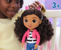 Descoperă lumea fanteziei cu păpușa Gabi inspirată de serialul GABBY'S DOLLHOUSE. Datorită detaliilor realiste, precum ochii mari expresivi, părul lung și creț și bentița iconică de pisică, este ideală pentru povești creative și pentru îmbrățișări zilnice.