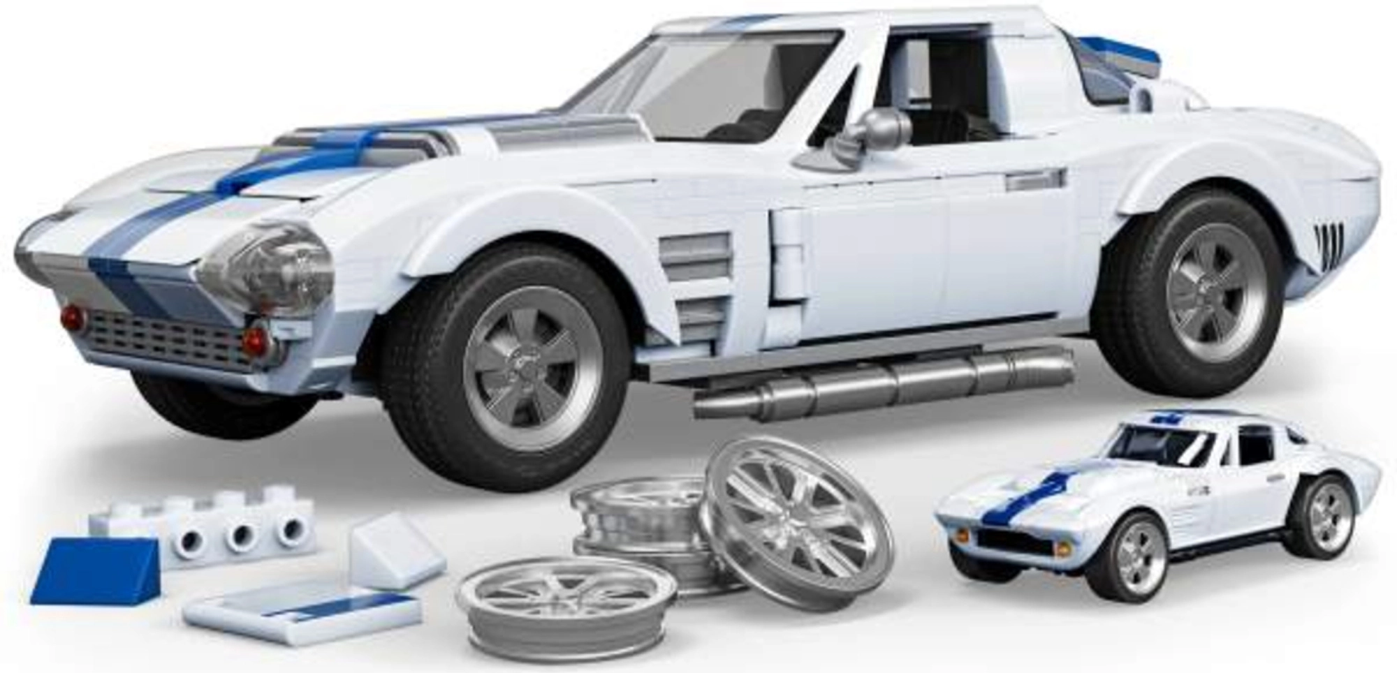 Încântați toți iubitorii mașinilor rapide și ai seturilor de construcție. Acest model detaliat Corvette Grand Sport se remarcă prin caroseria albă, liniile precise și elementele mobile, care îl fac atât un exponat deosebit, cât și o jucărie grozavă. Datorită componentelor metalice poți modifica mașina după gust, inclusiv schimbarea roților și a altor accesorii.