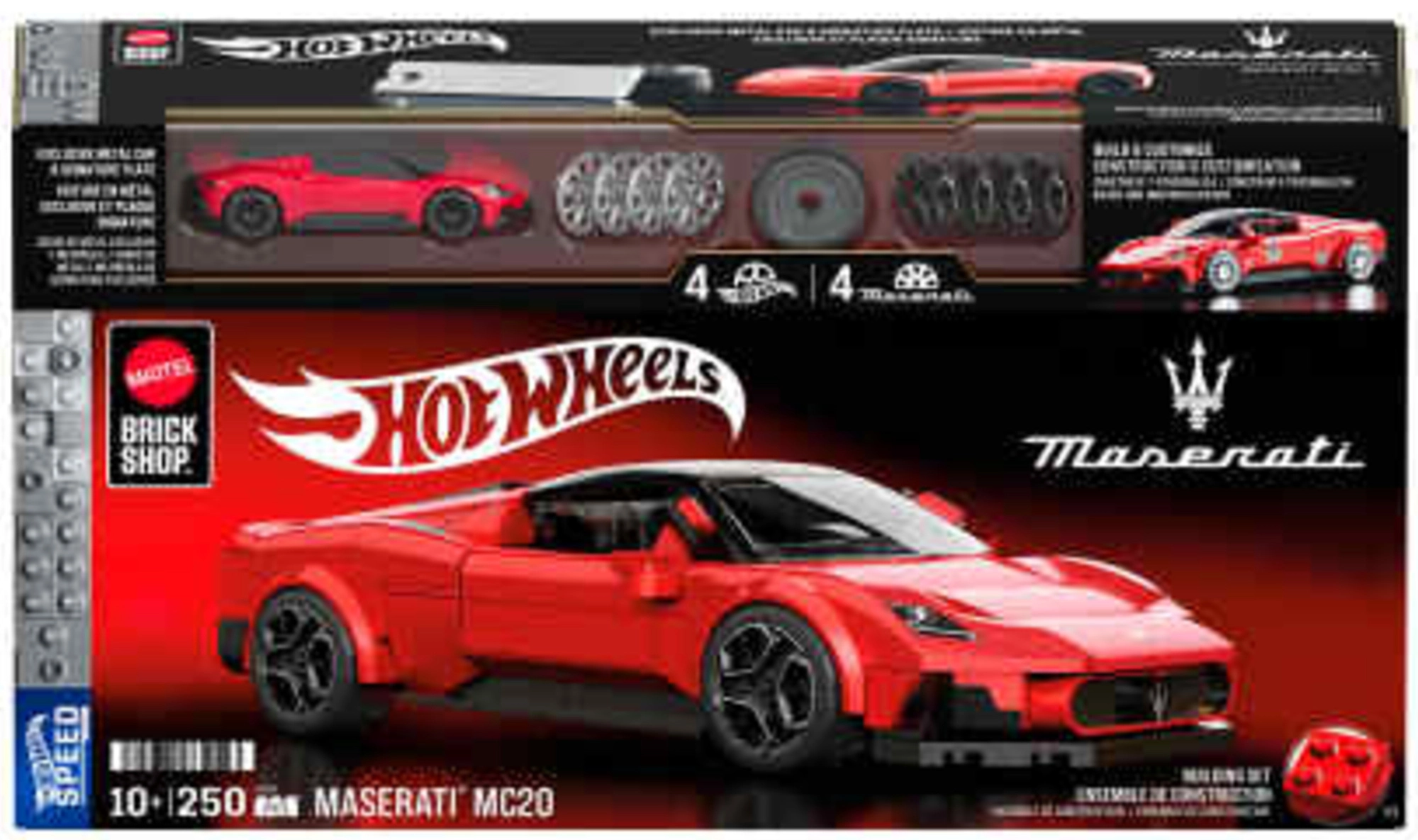 Bucură-te de modelare precisă și de o experiență de condus grozavă într-un singur pachet. Elegantul Maserati MC20 din ediția Hot Wheels Brick Shop încântă prin detalii realiste, caroserie roșie și funcții care sporesc plăcerea de joc și expunerea pe raft.