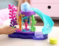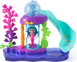 Toboganul, decorațiunile de corali și cupola transparentă creează un acvariu captivant în care Gabi și Sirenuța pornesc în noi povești.