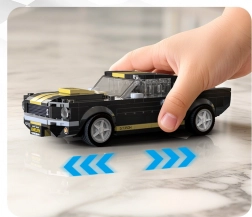 Bucură-te de o construcție precisă și de aspectul autentic al legendarului SHELBY GT350H sub licență. Modelul se remarcă prin vopseaua negru‑aurie, dungi de curse, priză pe capotă și cabină detaliată. Datorită pieselor imprimate fără autocolante, modelul arată curat și rezistent chiar și după mult timp de expunere.
