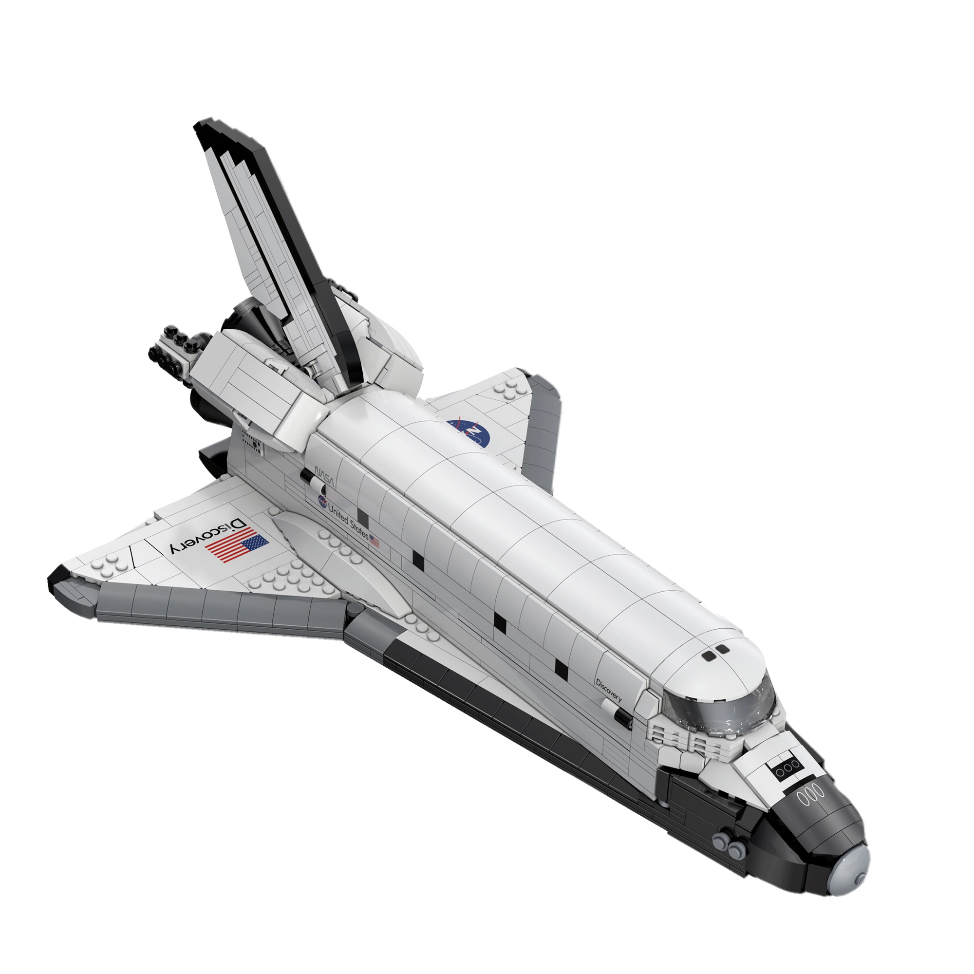 Datorită părților mobile poți recrea cu ușurință momentele celebre ale cuceririi spațiului – de la deschiderea compartimentului de marfă până la manevrarea „brațului” și extinderea trenului de aterizare. Imprimările tipărite durabile (logo NASA, steagul SUA, panouri) oferă un aspect premium fără autocolante, iar modelul arată excelent pe raft sau pe suport.