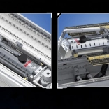 Cabină și compartiment de marfă care se deschid, tren de aterizare retractabil și braț robotic ajustabil permit reproducerea fidelă a misiunilor, inclusiv lansarea telescopului Hubble.