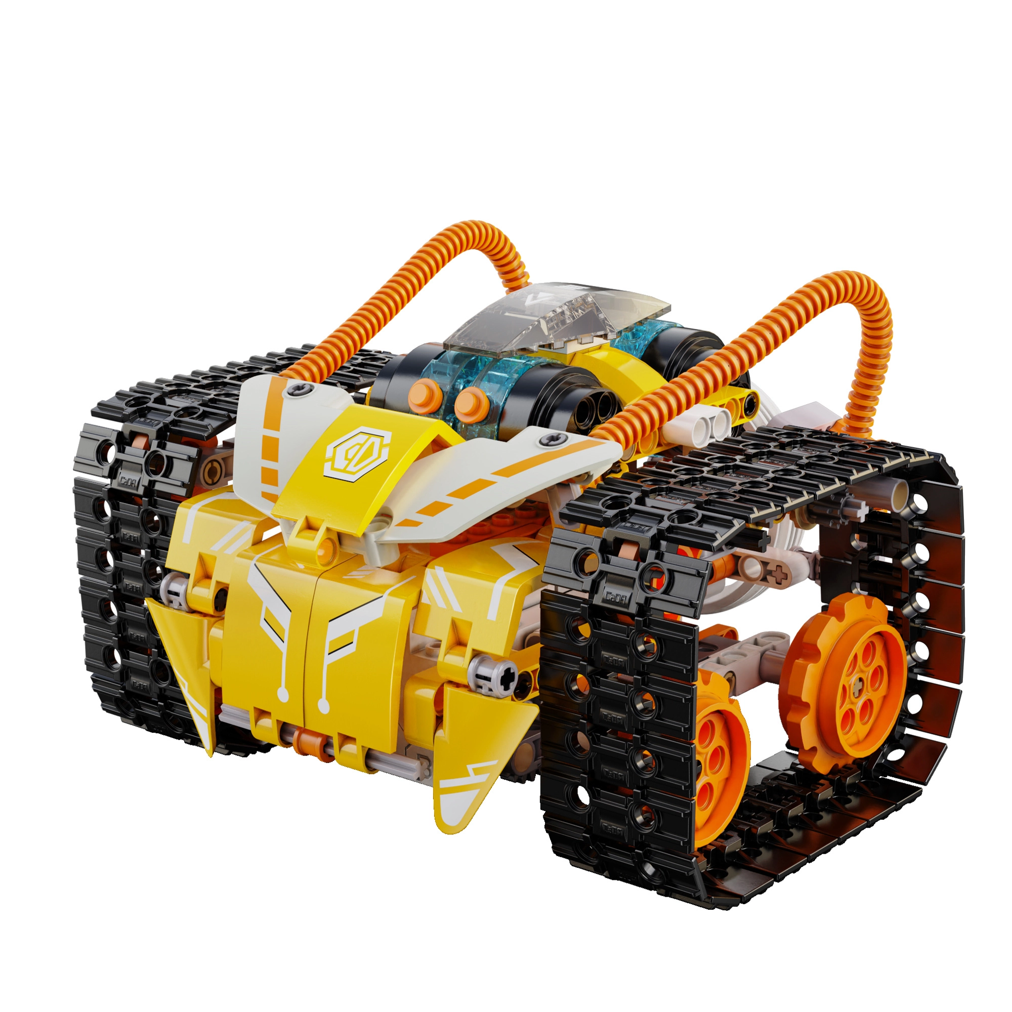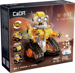 Setul CaDA W.Bot oferă distracție inteligentă pentru copii și adulți. Conceptul modular 3‑în‑1 permite construirea a trei modele diferite dintr-un singur set, iar datorită șasiului pe șenile, capului rotativ și instrumentului/rotorului funcțional 360° te bucuri de mișcare fluidă și acțiuni realiste. Luminile integrate conferă modelului un aspect atrăgător.