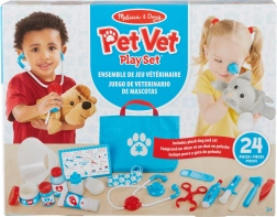 Sunt incluși și doi pacienți din pluș – cățel și pisică, alături de care copiii exersează o atitudine blândă și grijulie. Datorită genții portabile, setul este mereu la îndemână acasă sau în călătorii, iar jucăriile rămân ordonate.