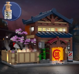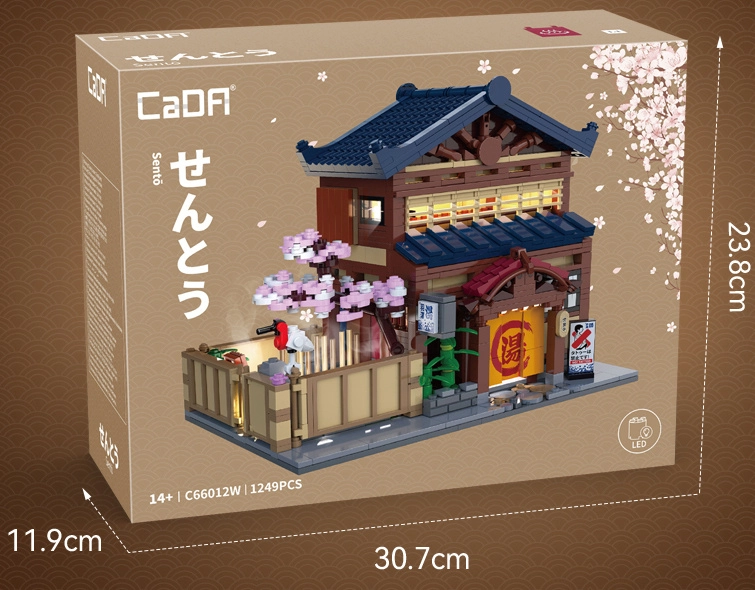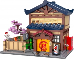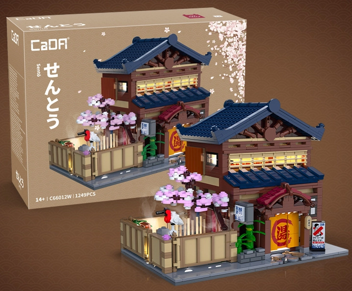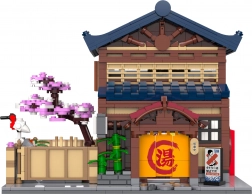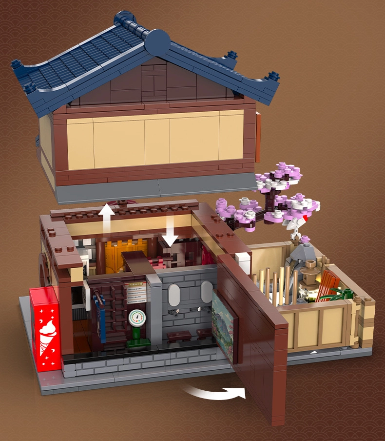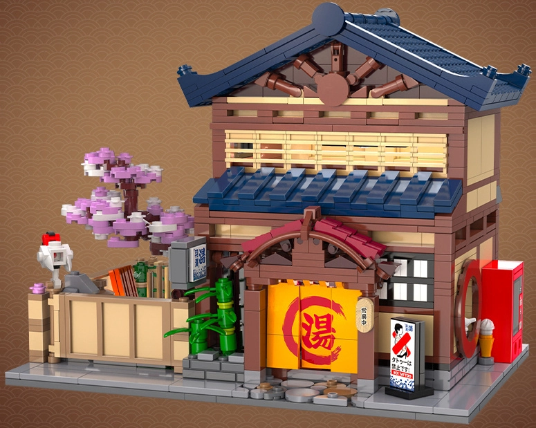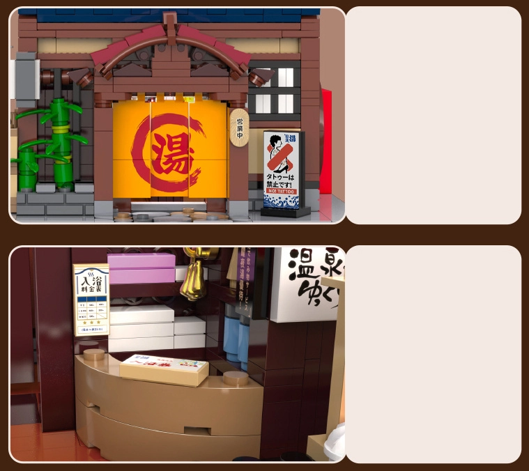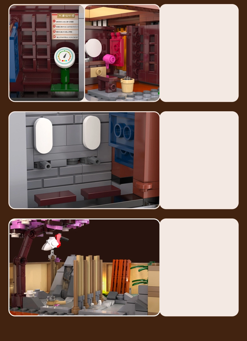 Acest model elaborat al băii japoneze tradiționale Sento aduce atmosfera autentică a Orientului Îndepărtat direct în colecția ta. Fațada exterioară impresionează prin detalii arhitecturale, precum frontonul, florile de sakura și elementele caracteristice stilului japonez. Datorită pereților rabatabili poți privi cu ușurință în interior și aprecia camerele amenajate realist.