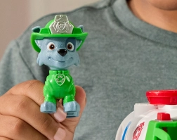 Setul de joacă Paw Patrol Rocky – autocisternă de pompieri cu figurină aduce copiilor aventuri pline de acțiune alături de eroii îndrăgiți din serialul animat. Vehiculul verde de salvare cu roți mobile se deplasează lin pe suprafețe drepte, iar cabina găzduiește figurina lui Rocky, pentru a porni imediat în acțiune.