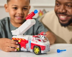 Fă cunoștință cu îndrăgitul dalmațian Marshall și cu superba sa mașină de pompieri inspirată din serialul PAW Patrol. Copiii pot pune figurina în cabină și porni către intervenție, ridica scara și, cu ajutorul tunului, lansa proiectile albastre „cu apă” spre flăcările imaginare. Această jucărie susține imaginația, motricitatea fină și joaca tematică de salvator.