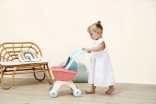 Roțile silențioase din plastic nu deranjează în interior, iar mânerul ergonomic se potrivește perfect mâinilor mici – manevrabilitate excelentă pentru copii de la 18 luni.