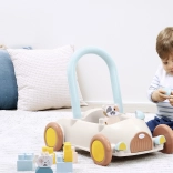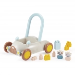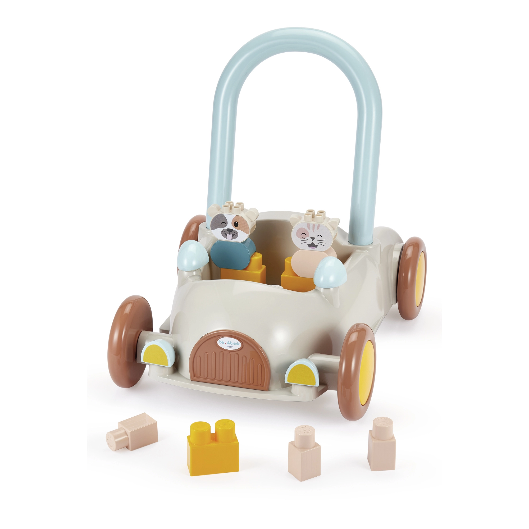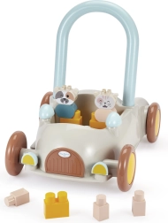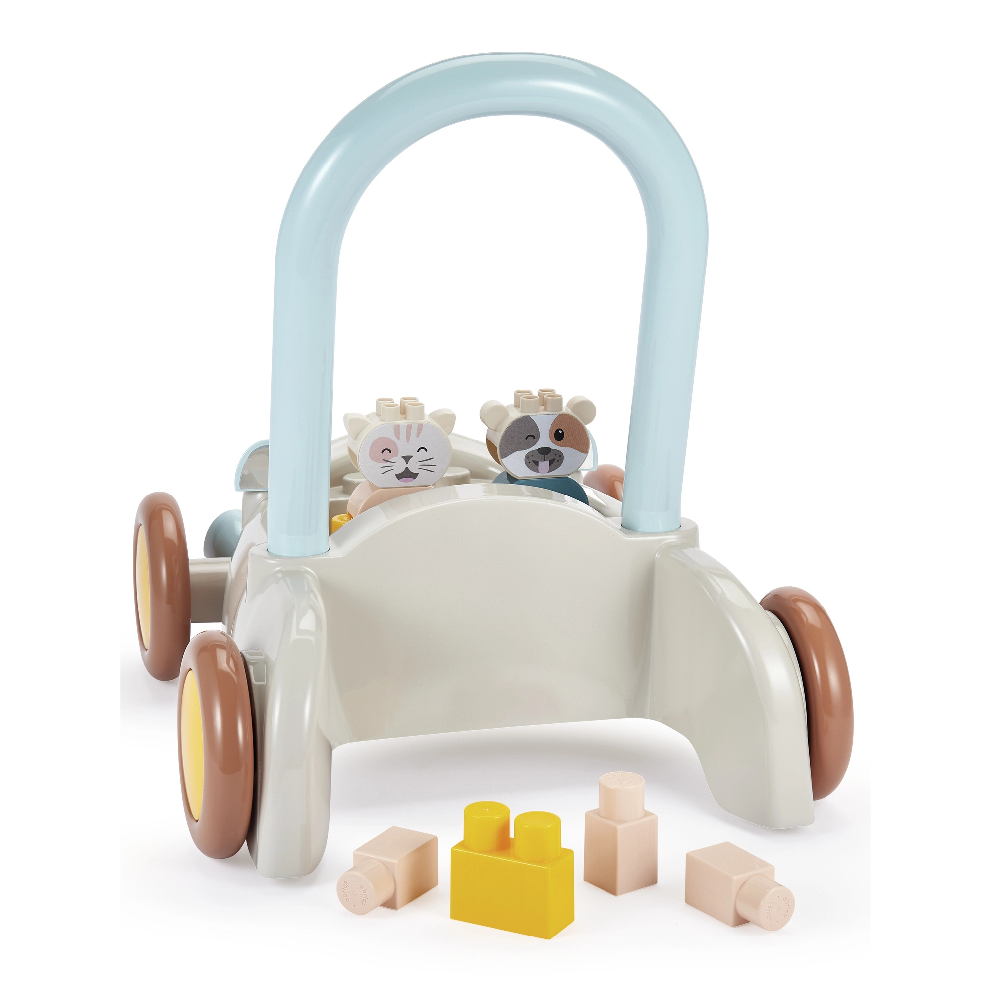 Descoperiți mașinuța multifuncțională de împins cu cuburi, care îi ajută pe cei mici la primii pași și, în același timp, îi distrează prin activități de construcție. Mașinuța are un mâner practic pentru împins sau tras, roți late pentru mișcare sigură și spațiu interior pentru cuburi. Include aproximativ 16 piese de construcție și două figurine drăguțe, pisicuță și văcuță, care stimulează imaginația și jocul tematic.