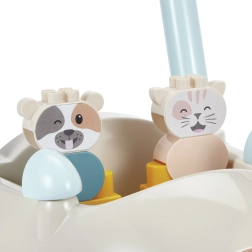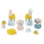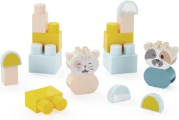 Setul include aproximativ 16 cuburi și două figurine: o pisicuță și o văcuță. Piesele mari, rotunjite, sunt ideale pentru mâinile mici și încurajează construcția creativă.