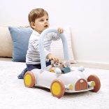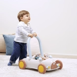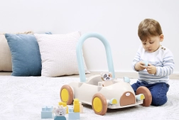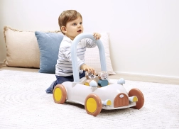 Roțile late, mânerul confortabil și construcția robustă îi ajută pe cei mici să își exerseze în siguranță echilibrul și încrederea la mers atât acasă, cât și pe covor.