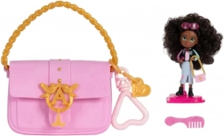 - mini păpușă, geantă cu litera „A”, pieptăn, ochelari de soare, suport, geantă roz portabilă