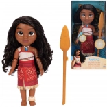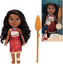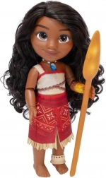 Descoperă magia oceanului cu păpușa MOANA de 35 cm, care cântă un fragment din piesa „Beyond” în mai multe limbi și oferă tatuaj luminos și vâslă iluminată. Datorită părului lung și negru potrivit pentru coafat, ochilor sclipitori și articulațiilor pentru poziționare, este ideală pentru joacă creativă și povestire. Include baterii de test.