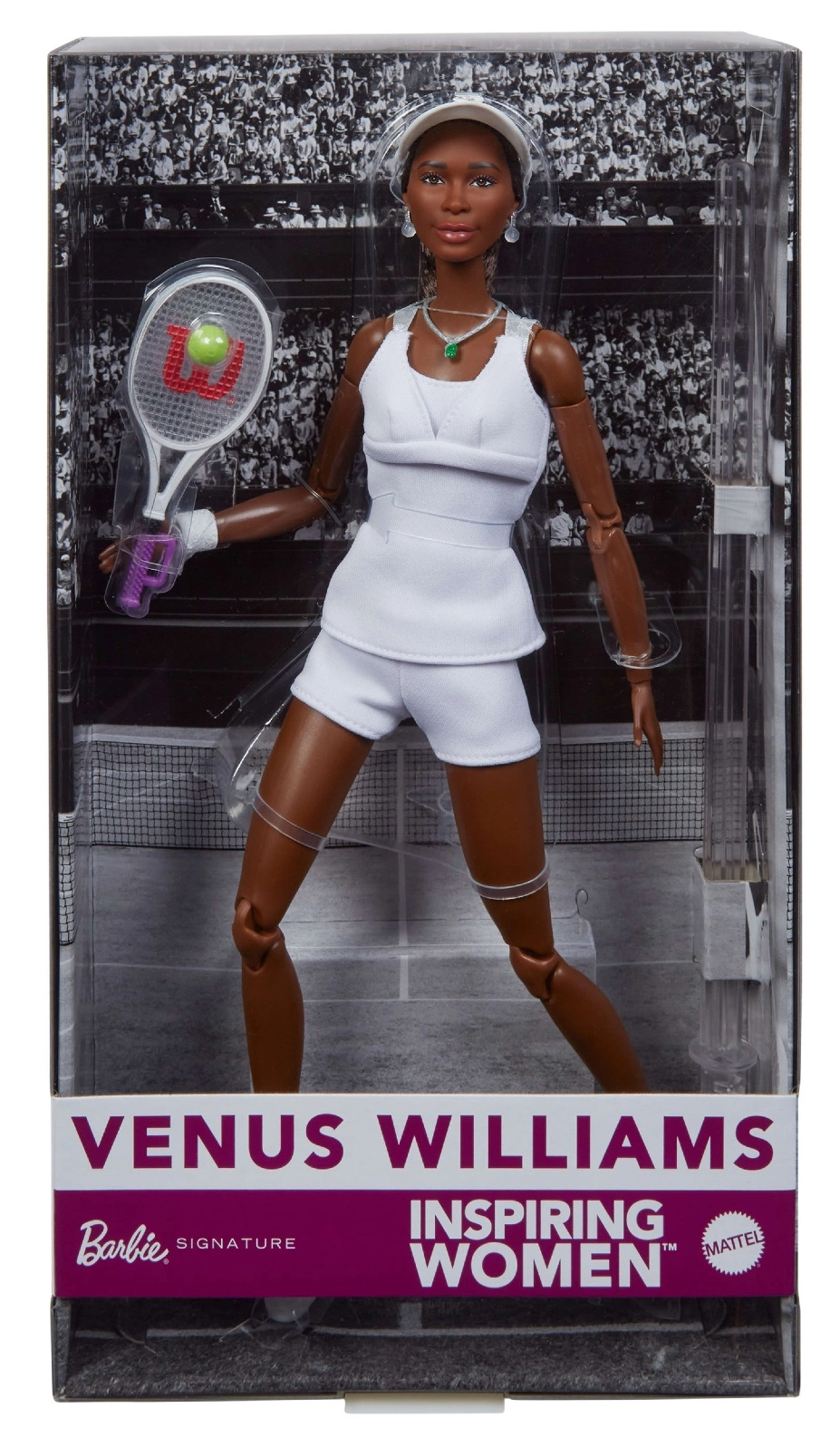Această păpușă, atractivă pentru colecționari și totodată versatilă pentru joacă, oferă copiilor și fanilor tenisului o experiență autentică. Modelul inspirat de Venus Williams are păr lung, închis la culoare, accesorii statement și o ținută sport care se potrivește perfect atât jocului pe teren, cât și expunerii.