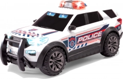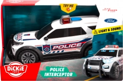 Mașina de poliție FORD INTERCEPTOR impresionează prin detaliile realizării în culoare albă cu inscripții Police și elemente efect. La apăsarea butonului de pe acoperiș se activează efectele luminoase și sonore – girofaruri roșii și albastre și o sirenă realistă, care stimulează imaginația copiilor și jocurile pline de acțiune.