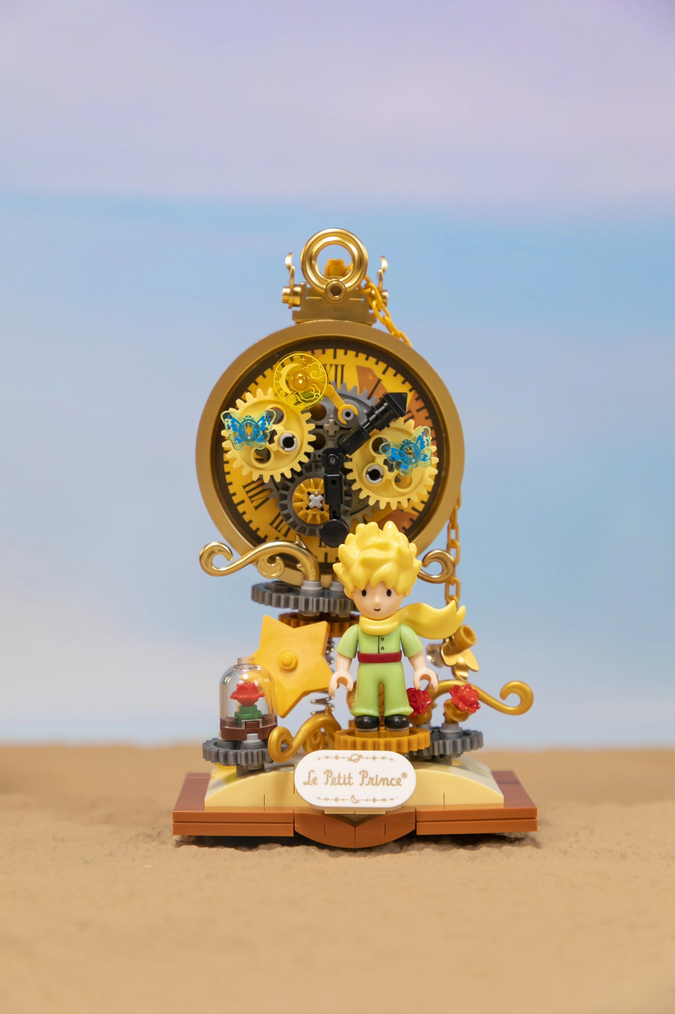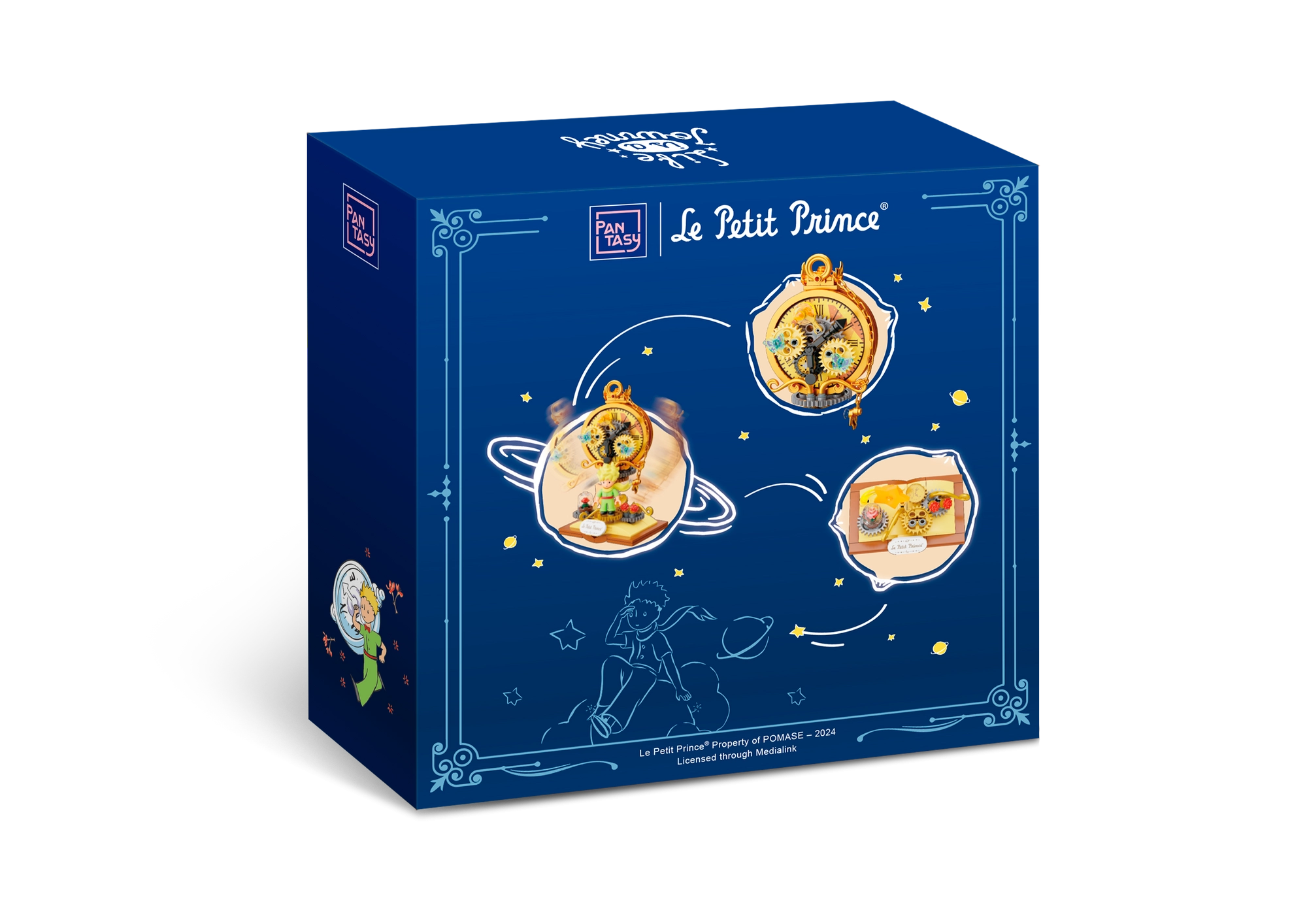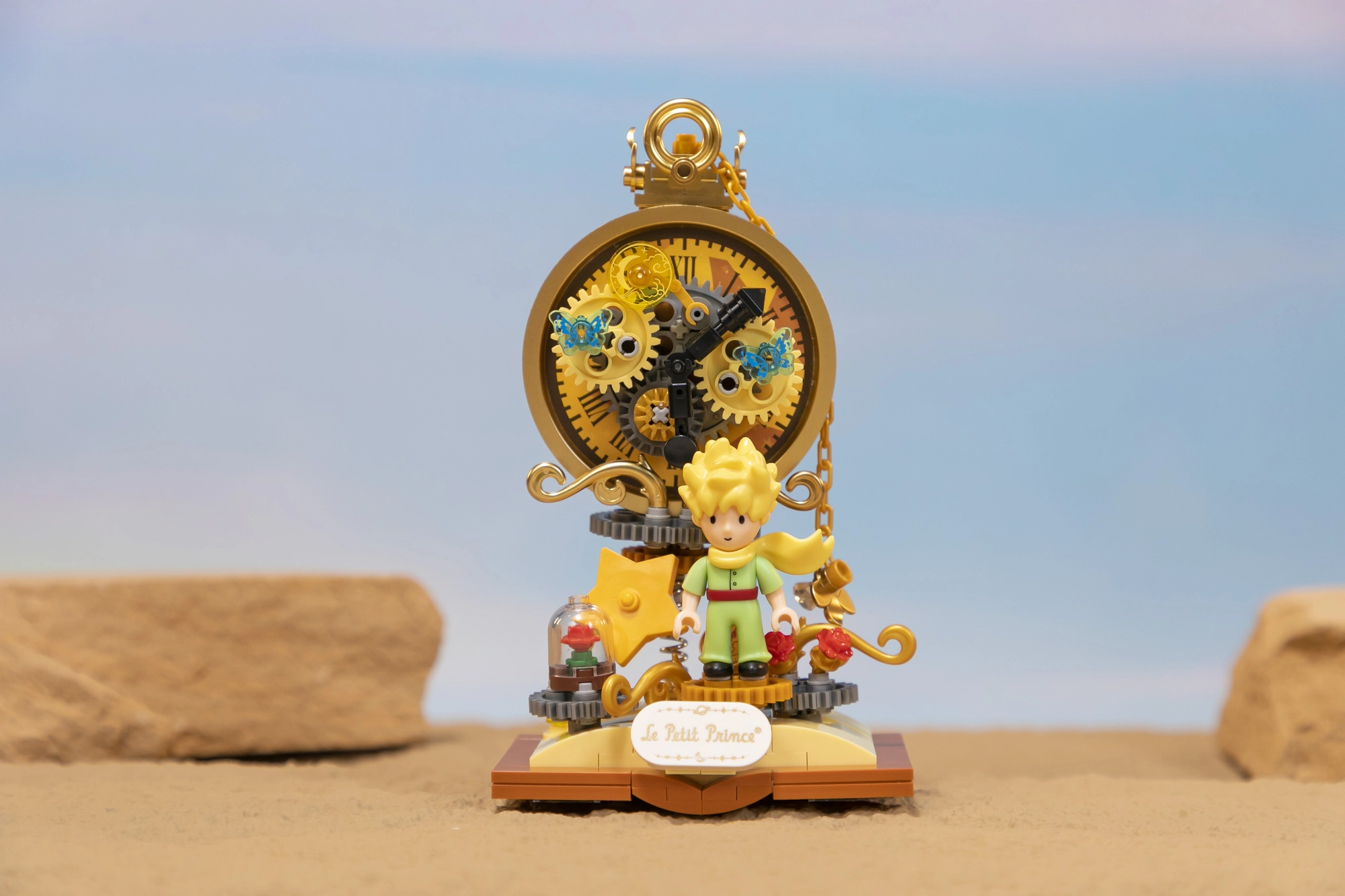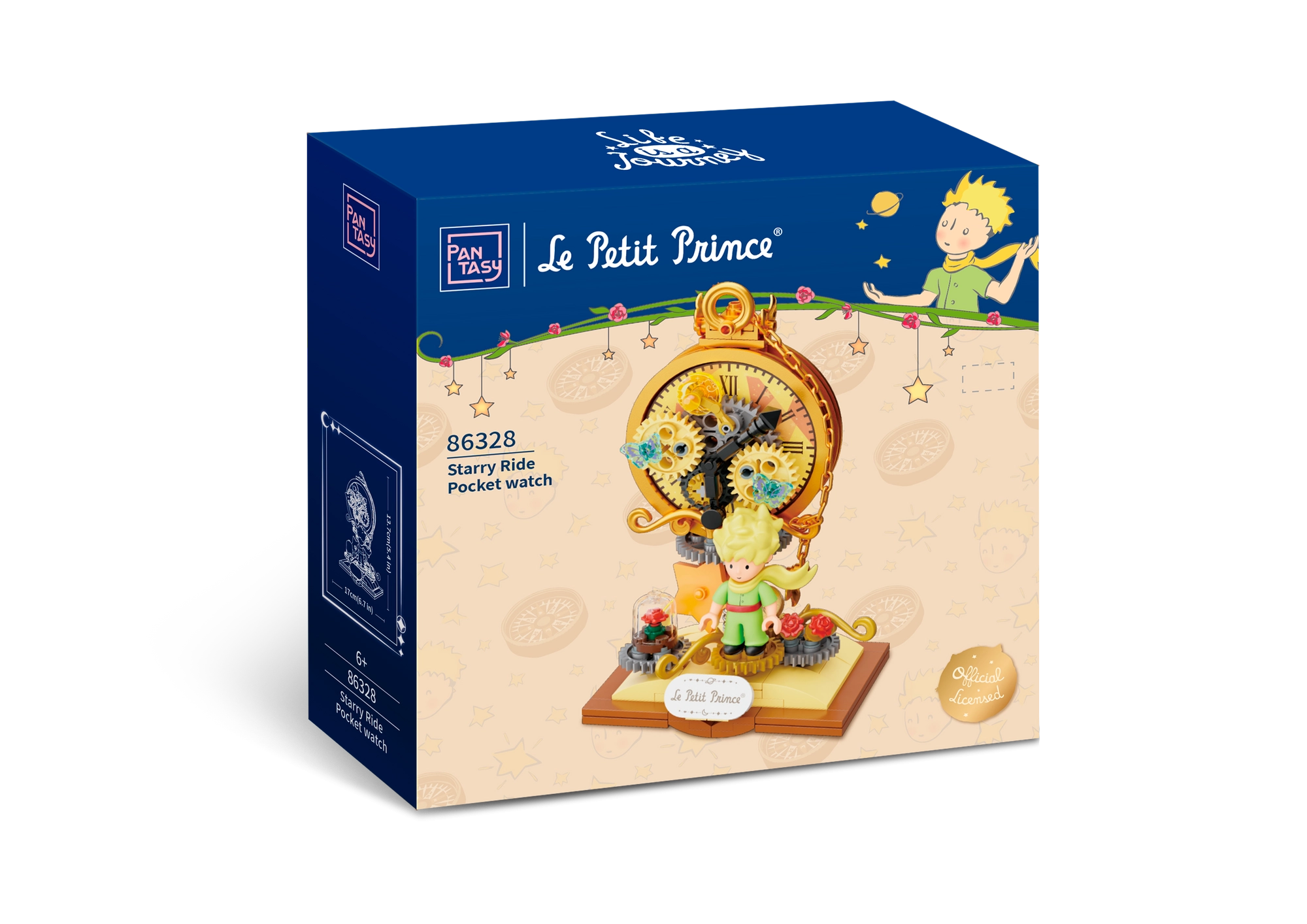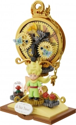 Acest set licențiat PANTASY aduce magia universului Micul Prinț într-o decorațiune impresionantă: Micul prinț în fața unui cadran stilizat cu roți dințate aurii, completat de simbolicul trandafir sub cupolă și detalii stelare. Paleta pastelată și liniile delicate evocă ilustrațiile originale, astfel încât modelul se evidențiază pe raft, pe birou sau în camera copilului.
