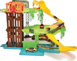 Designul colorat, cu elemente realiste precum liane, copaci și decorațiuni tematice, îi introduce pe copii în poveste. Mașinuța metalică inclusă este gata de joacă imediat după despachetare și susține dezvoltarea coordonării și imaginației.