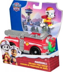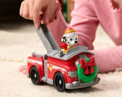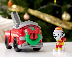 Autospeciala roșie este decorată cu o coroniță verde cu fundă și motive de iarnă. Marshall, cu căciulă călduroasă, pregătește fiecare misiune pentru sezonul rece.