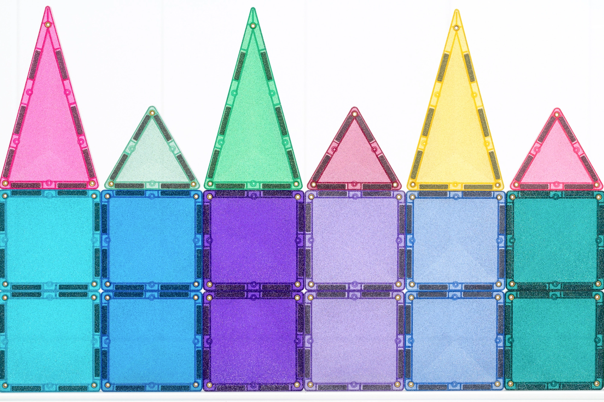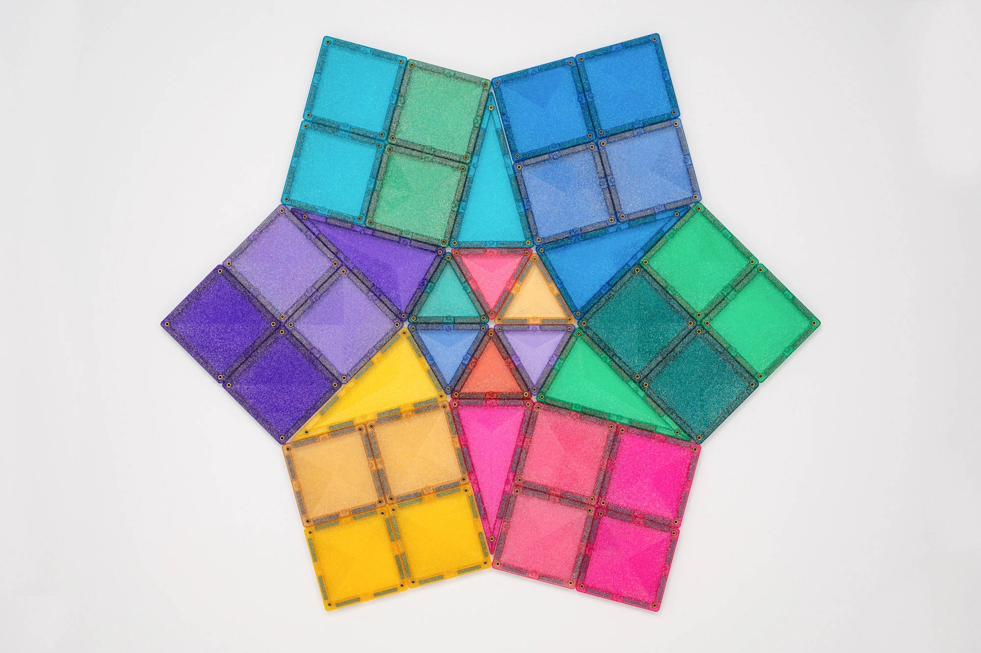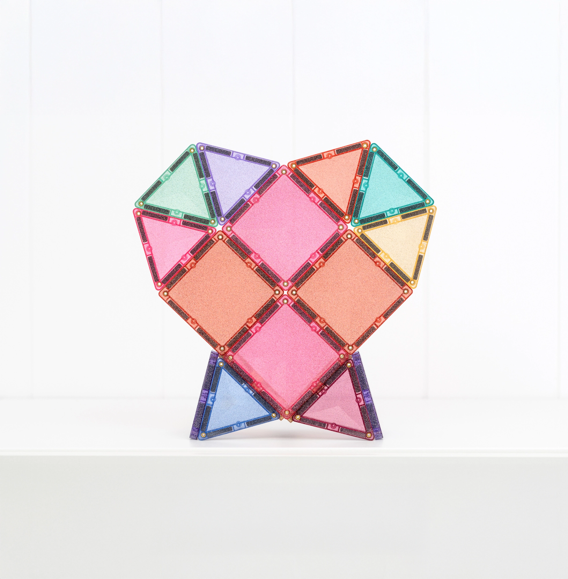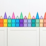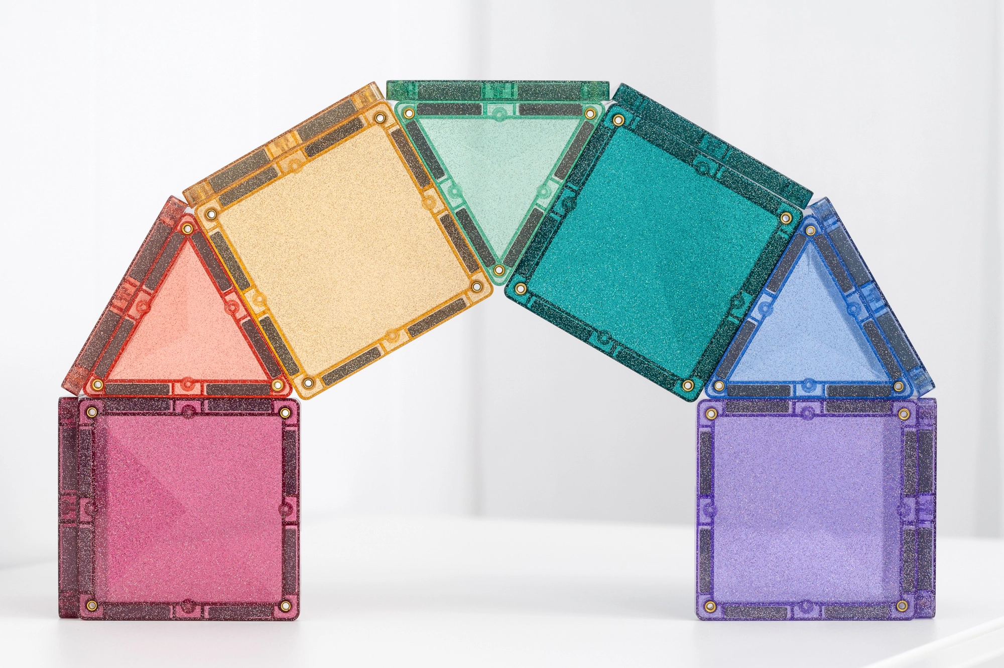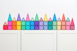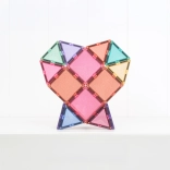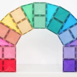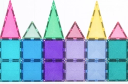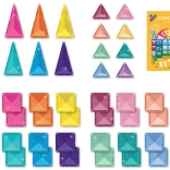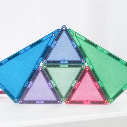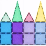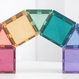 Setul conține 48 de piese magnetice de înaltă calitate, cu efect sclipitor, care se atrag pe tot conturul din toate direcțiile și mențin structuri stabile. Plăcuțele colorate translucide din ABS durabil, fără BPA și ftalați, sunt ideale pentru joacă sigură de la 3 ani și oferă un „click” plăcut la îmbinare.